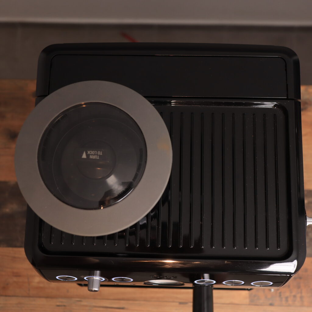 Probably one of the main reasons for the Breville Barista Express’ success are it’s aesthetics. Even more than 10 years after launch, the machine still looks quite nice on the countertop, especially in the color “black truffle.” In the middle of the machine is a manometer, which is surrounded by two circular buttons on the left and three on the right. On the right side of the machine is a hot water outlet, and a nice steam wand on a 360 degree ball joint, operated by a toggle switch on the right side of the casing.