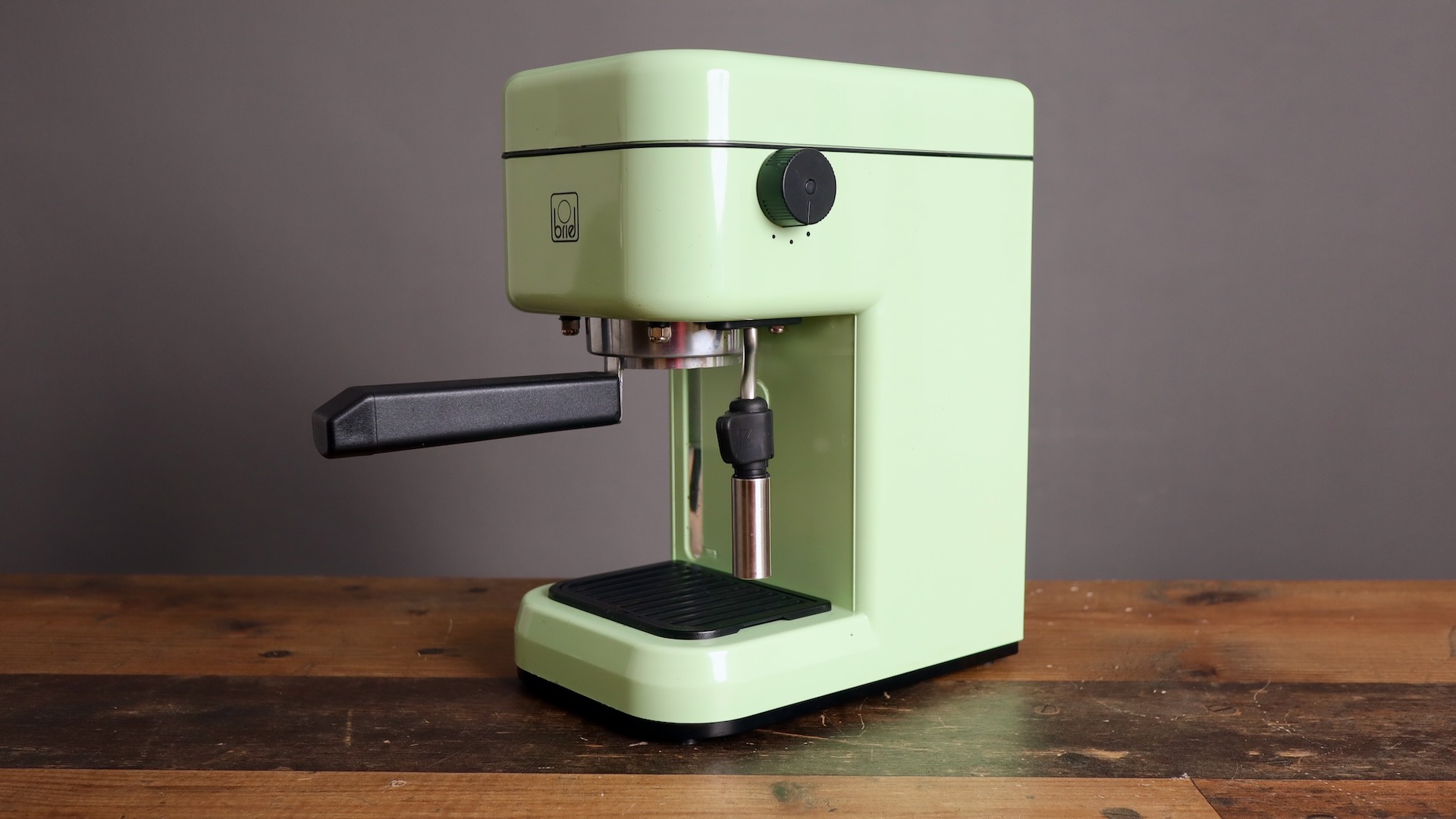 The Briel B14S is a very small and light espresso machine, with 53mm portafilter and panarello, made in Portugal. It has a small, stainless steel boiler, and 3 switches: on/off, brew, and steam mode. It comes in various retro colors, and has a neat little retro design, that some will be sympathetic to.