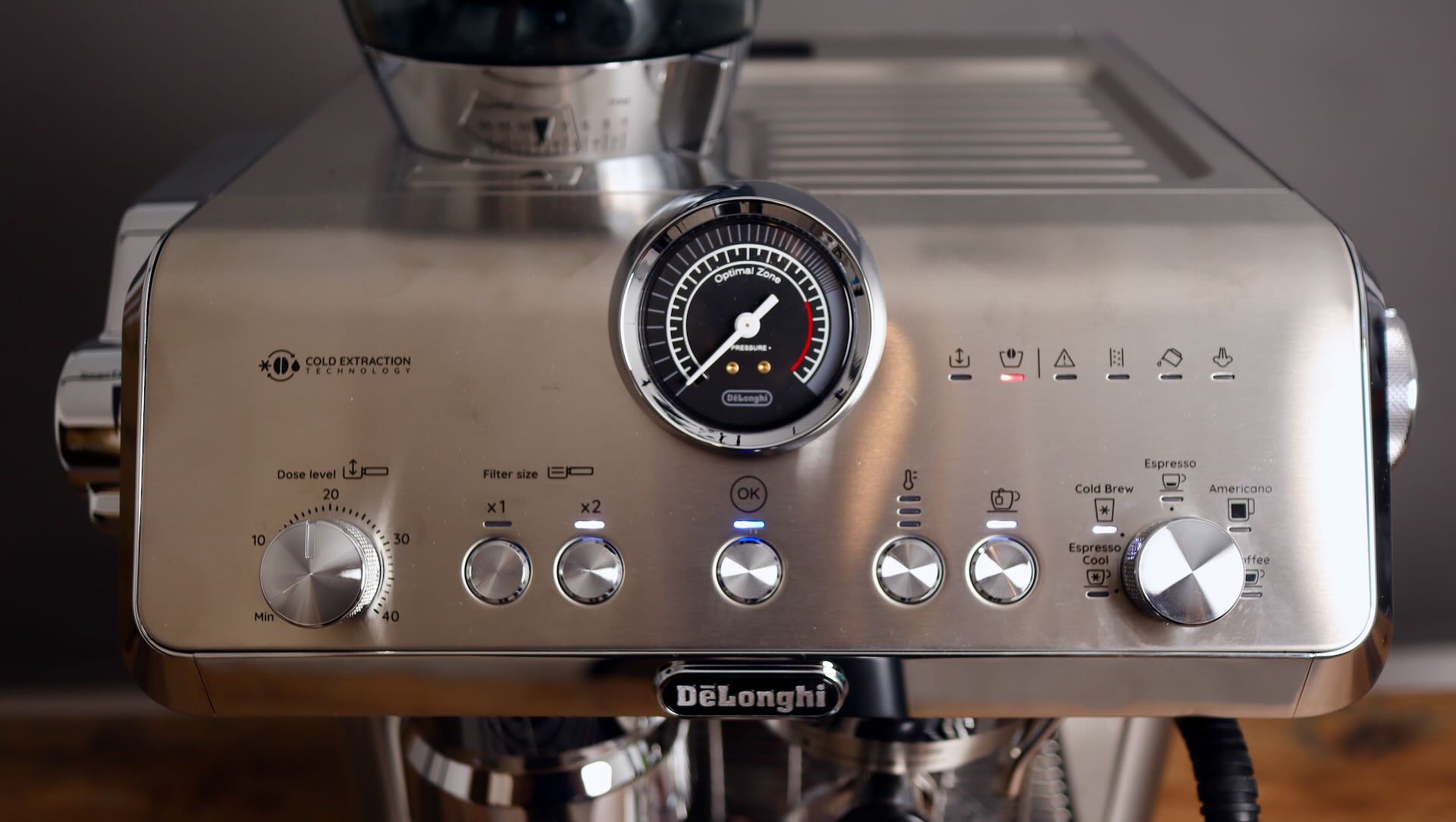 Another BIG surprise is the inclusion of a 3 way solenoid valve! This means that the pressure is diverted off the puck, into the drip tray after the extraction, so that you can quickly remove the portafilter after brewing. That’s awesome, and something that has been omitted from previous Delonghi machines.
