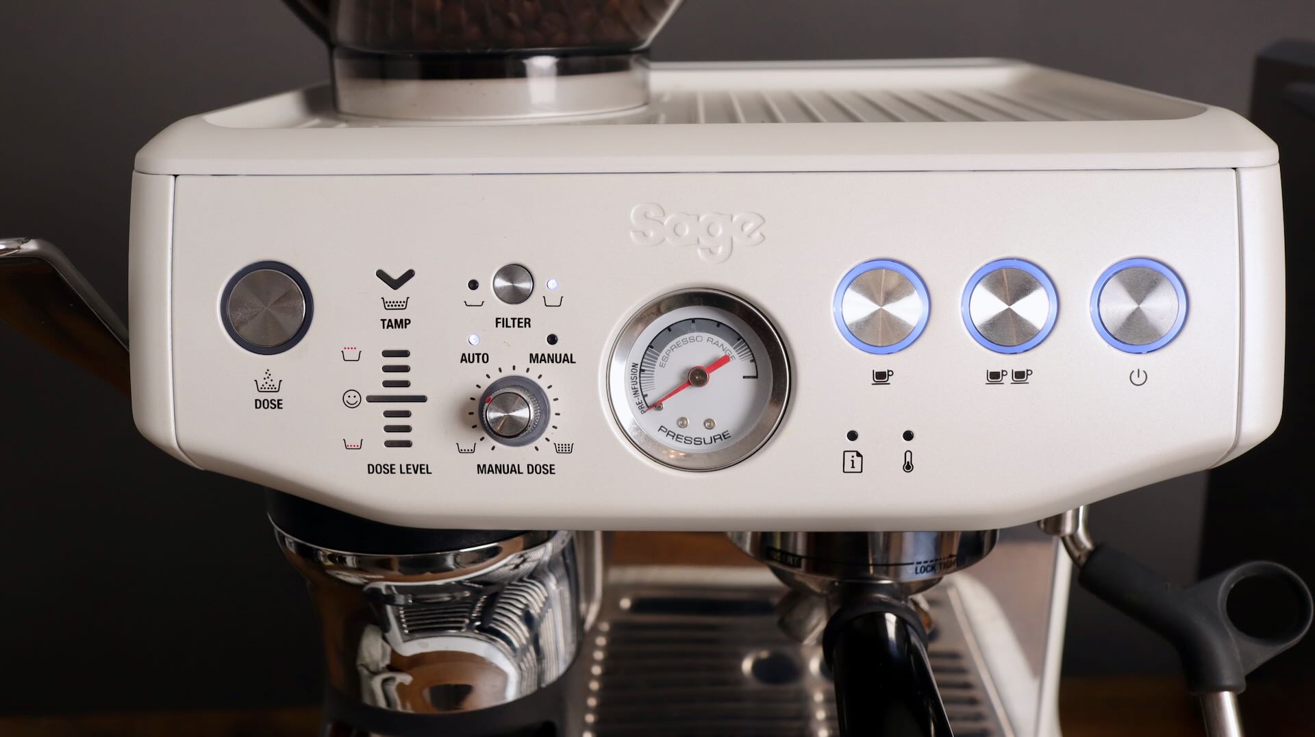 On the Breville, if you press and hold the 1 cup or 2 cup button, you enter ‘Manual Mode’, and you can therefore pre-infuse up to 60 seconds, at a lower pump pressure. Once you let go, then the extraction starts with full pressure. This is really a nice feature to experiment with, especially when you have new beans and don’t know how long the extraction will take.